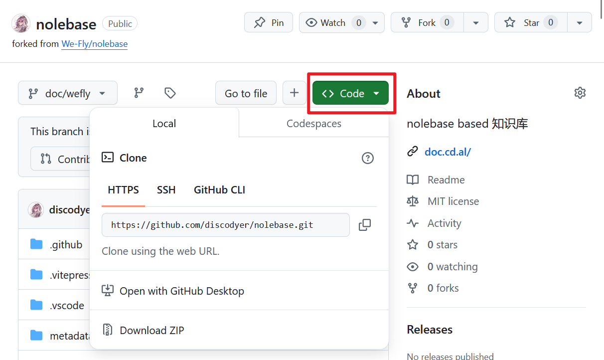 git clone https://github.com/YOUR_NAME/nolebase.git # 使用https克隆