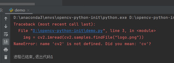 终端提示NameError: name 'cv2' is not defined. Did you mean: 'cv'?